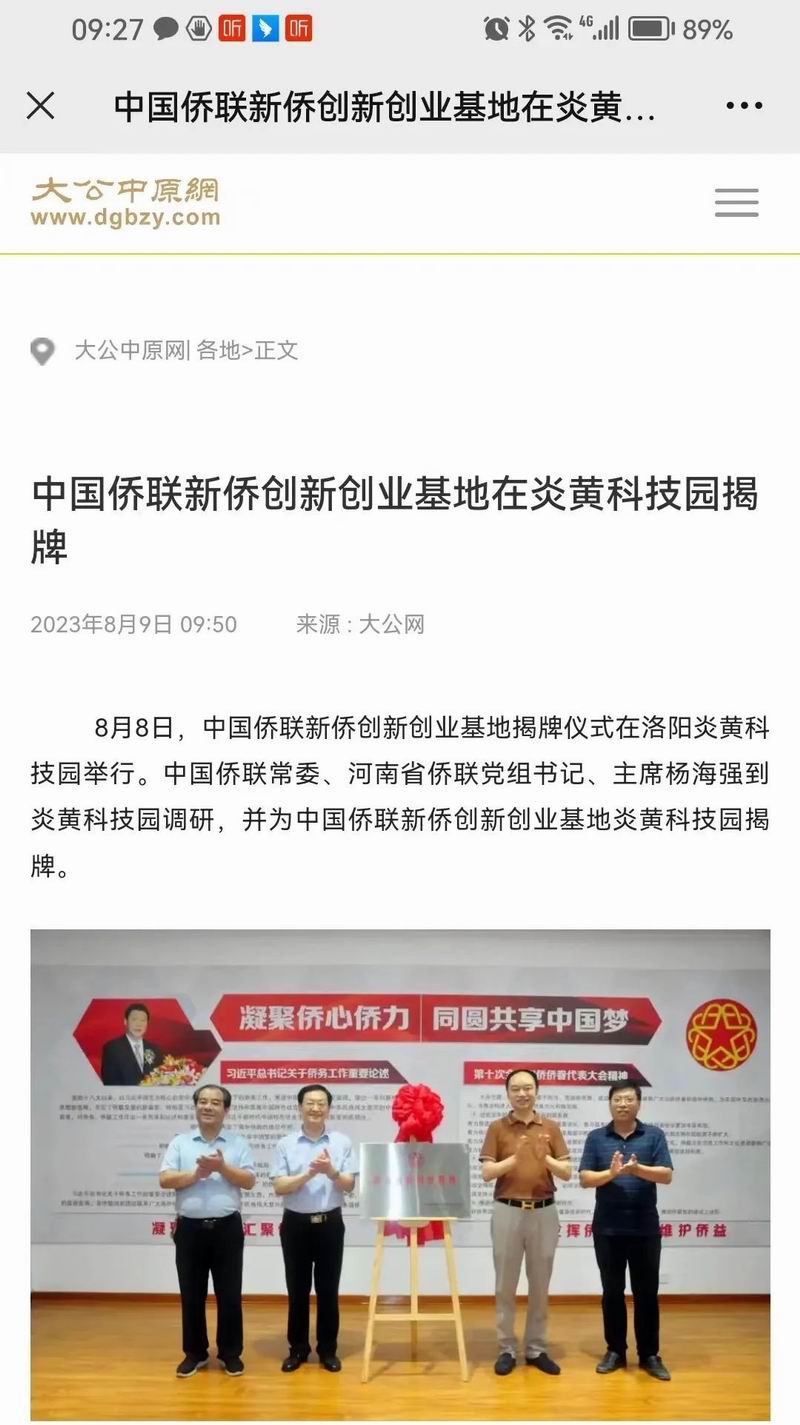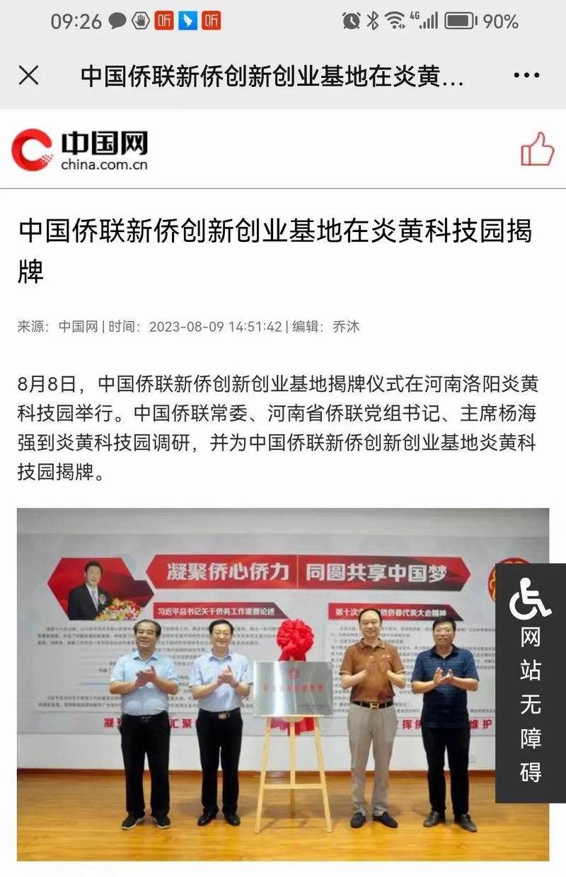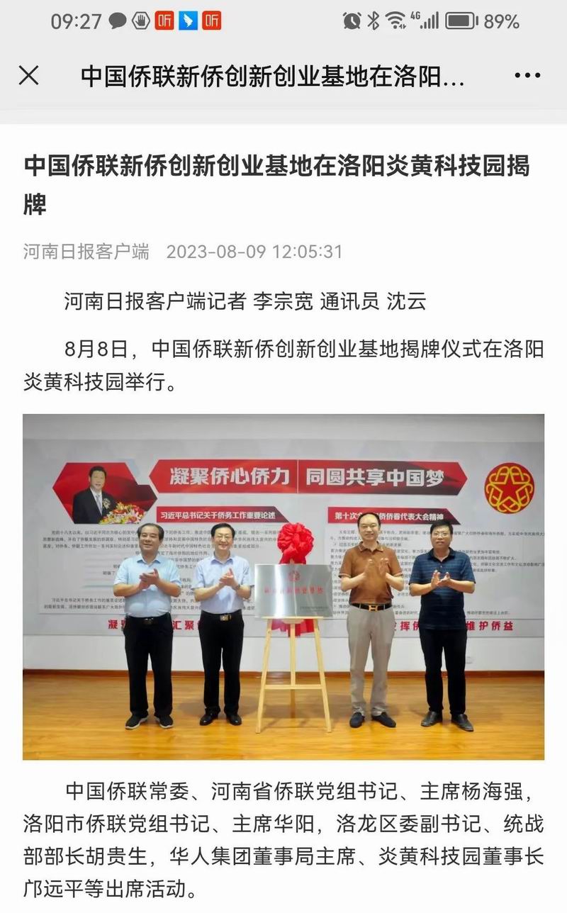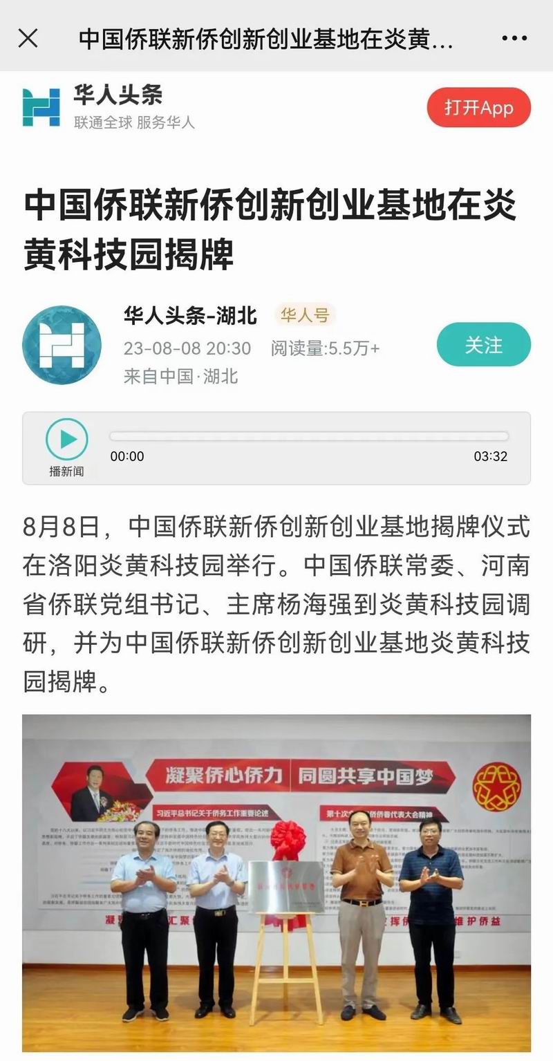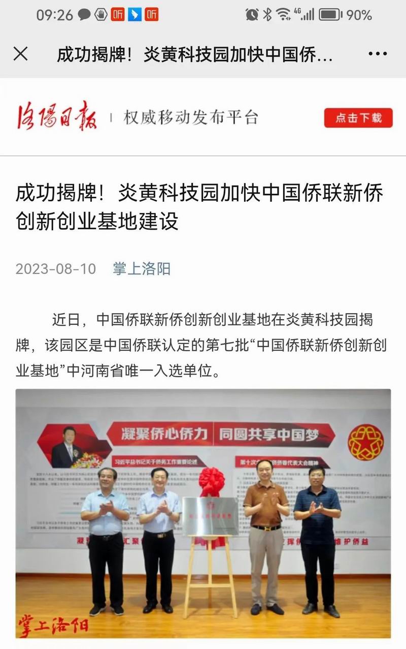 位于洛陽(yáng)市洛龍區(qū)的炎黃科技園,以為僑服務(wù)為宗旨,在園區(qū)打造關(guān)心、愛(ài)心、聯(lián)心、貼心和舒心的“為僑服務(wù)站”,受到各級(jí)僑聯(lián)組織的肯定和贊揚(yáng),被中國(guó)僑聯(lián)認(rèn)定為“新僑創(chuàng)新創(chuàng)業(yè)基地”。近日,中國(guó)僑聯(lián)常委、河南省僑聯(lián)黨組書(shū)記、主席楊海強(qiáng)到炎黃科技園調(diào)研指導(dǎo),為中國(guó)僑聯(lián)新僑創(chuàng)新創(chuàng)業(yè)基地炎黃科技園揭牌,引起了廣泛的關(guān)注。