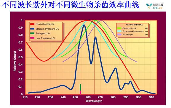 微生物結構,微生物的體內都含有RNA(核糖核酸)和DNA(脫氧核糖核酸),而RNA和DNA的共同特點是具有由磷酸二酯按照嘌呤與嘧啶堿基配對的原則相連的多核酸鏈,它對紫外光具有強烈的吸收作用。紫外線殺菌的原理一般認為它與破壞細胞內代謝、遺傳、變異等現象起著決定性作用的核酸相關,波長在200~300nm之間的紫外線有殺滅作用,其中以254nm波長的紫外線滅菌效果最好。這是因為細胞中的DNA(脫氧核糖核酸)核蛋白的紫外吸收峰值正好在254~257nm之間⑶。